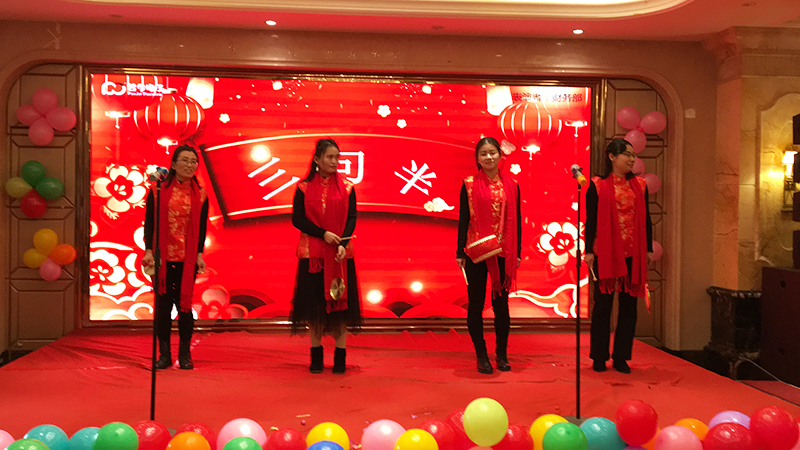 此次年会节目精彩纷呈、让人目不暇接。绚丽的时装秀、优美的舞蹈、激昂的男生独唱,还有舞台剧、小品等节目,五彩缤纷,精彩纷呈,中间还穿插了抽奖环节,随着三等奖、二等奖、一等奖、特等奖的抽取,不断掀起年会的高潮。年会不仅给大家带来了欢声笑语,同时也让同事之间彼此的心更加贴近。公司领导与员工亲切互动、激动人心的抽奖活动,让歌声、掌声、欢呼声一直在会场上荡漾。整场联欢会高潮迭起,呈现出普今电子这个大家庭的欢乐和谐.